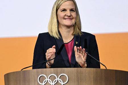 Die neue IOC-Präsidentin Kirsty Coventry wird gefeiert.
