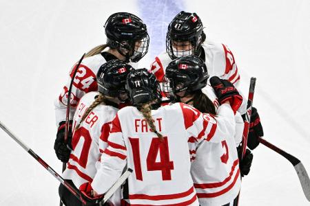 Mit einer Stunde Verspätung haben die Rekord-Olympiasiegerinnen aus Kanada bei den Spielen in Peking auch ihr Eishockey-Vorrundenspiel gewonnen.