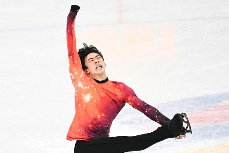 Mit der Weltrekordzahl von 332,60 Punkten verwies der 22-Jährige Hanyus Landsleute Yuma Kagiyama (310,05) und Shoma Uno (293,00) auf die Plätze zwei und drei. Chen begeisterte die pandemiebedingt wenigen Zuschauer zur Filmmusik "Rocket man" von Elton John, gespickt mit zahlreichen Höchstschwierigkeiten.
