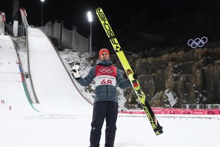 Während Bundestrainer Werner Schuster über die Bande hüpfte und Bundespräsident Frank-Walter Steinmeier um den Hals fiel, während seine mit Platz acht und neun leicht unter Wert geschlagenen Kumpel Markus Eisenbichler und Richard Freitag ihren "Welle" lautstark feierten, schritt dieser wie in Trance zur Siegerehrung.