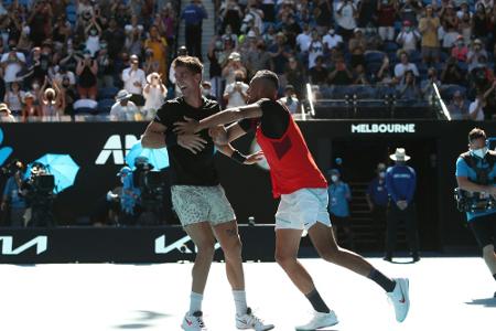 Dort kommt es zum ersten komplett australischen Endspiel beim Heim-Grand-Slam seit 1980. Kyrgios und Kokkinakis, die mit ihrer emotionalen Art für große Unterhaltung sorgen und zu einem Highlight des Turniers geworden sind, treffen am Samstag auf Matthew Ebden und Max Purcell. Die australische Tennis-Legende Rod Laver schickte über Twitter umgehend Glückwünsche an die erfolgreichen Landsmänner.