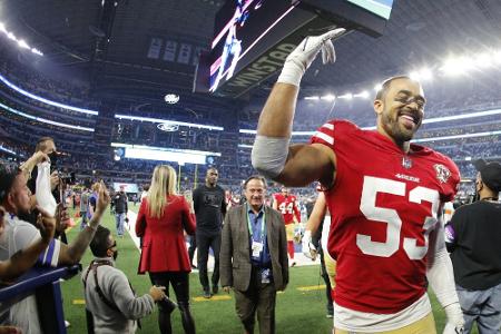 Am Ende reichte es dennoch knapp für die 49ers, weil Dak Prescott ein Fehler unterlief: Vor der vermeintlich letzten Chance auf einen Touchdown zum Sieg versäumte der Cowboys-Quarterback es, dem Schiedsrichterteam den Ball zu übergeben - die Zeit lief ab, das Spiel war beendet.