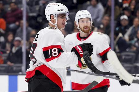 In der Saison 2022/23 hatte Stützle, 2020 von Ottawa bereits an dritter Stelle im Draft gewählt, seinen Durchbruch mit 90 Scorern, ehe vergangene Saison erstmals in seiner jungen NHL-Karriere zumindest auf Scorer-Ebene ein Rückschritt erfolgte. Doch in dieser Saison jagt er im Eiltempo die 100-Punkte-Marke.