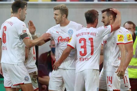 Holstein Kiel hat seinen Aufwärtstrend in der 2. Fußball-Bundesliga fortgesetzt und Erzgebirge Aue einen weiteren Tiefschlag versetzt.
