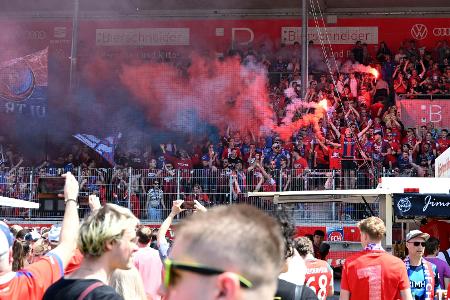 Genau dieser gehe für den Zweitligameister in Erfüllung, schwärmte Schmidt. "Ich habe hier vor 250 Zuschauern Fußball gespielt", erinnerte sich der gebürtige Heidenheimer im roten Aufsteiger-Shirt, "wir sind mega happy, dass wir hier dabei sein durften." Das "größte Geschenk" sei für ihn, dass seine Mannschaft "so zusammenhält", ergänzte er, und rief: "Willkommen in der ersten Liga!"