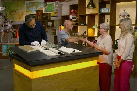 Horst Lichter (links) staunte nicht schlecht, als Experte Detlev Kümmel in der Montagsausgabe der ZDF-Trödelshow "Bares für Rares" zur Rasierklinge griff: "Das ist das erste Mal, dass wir was kaputt machen." Die Verkäuferin stimmte dem ungewöhnlichen Eingriff zu, obwohl der ermittelte Schätzwert nach der Aktion sogar niedriger ausfiel als zuvor.