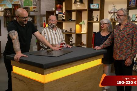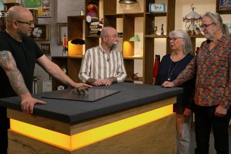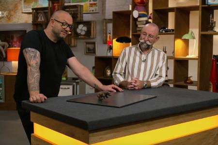 Altes Spielzeug hatte schon öfter auf dem Expertenpult von Sven Deutschmanek (links) gelegen, doch dieses Stück stach in der Mittwochsausgabe der ZDF-Trödelshow "Bares für Rares" selbst für den Fachmann heraus. Kein Wunder also, dass der seltene Blechbär am Ende ein hitziges Händler-Duell entfachte und Horst Lichter ihn in seine Vitrine stellen wollte.