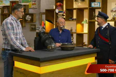 Moment mal: Wer marschierte denn da schnurstracks auf das "Bares für Rares"-Studio zu? Die Uniform erinnerte verdächtig an einen Offizier. Oder war es lediglich ein Kostüm? Und was war das für ein seltsames Ding in seinen Händen?