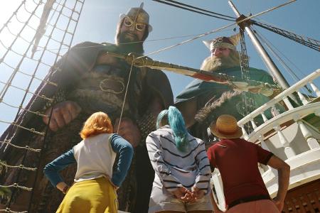 Monkey D. Ruffy (Iñaki Godoy) und Nami (Emily Rudd) sind außer sich vor Freude: Sie haben mit ihrer Crew den Reverse Mountain bewzungen und können Kurs auf die Grand Line nehmen.