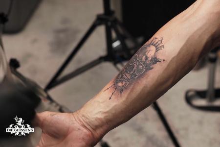 Ein Totenkopf mit den Initialen von Carmen, Davina und Shania ziert nun Roberts Unterarm.