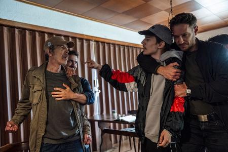 Hauptkommissar Leo Hölzer (Vladimir Burlakov, rechts) hatte große Mühe, Peter Feidt (Albert Lichtenstern, zweiter von rechts) und Jochen Louis (Gode Benedix) auseinanderzuhalten.