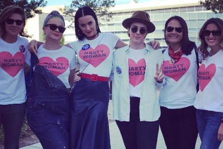 US-Sängerin Katy Perry mischt sich erneut in den US-Wahlkampf ein. Diesmal postet sie ein Bild von sich und anderen Frauen mit "Nasty Woman"-Statement auf dem T-Shirt.