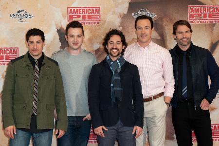 Hätte er sich doch lieber an Stifflers Mom gehalten! Eddie Kaye Thomas mit seinen "American Pie"-Kollegen Jennifer Coolidge, Jason Biggs und Seann William Scott.