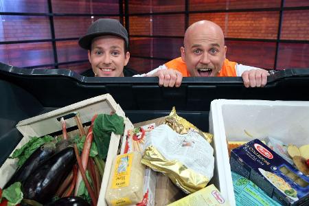 In der "Promi Kocharena" wird gegessen, was auf den Tisch kommt. Auch wenn es aus dem Müll stammt. Sänger Ben (l.) mit Koch Ralf Zacherl.