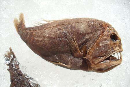 Anoplogaster oder Blattschupper - Dem möchte man nicht im Dunkeln begegnen - aber nur da hält sich dieser Fisch auf. Der stets grimmig guckende und zähnefletschende Blattschupper lebt in 200 bis 5.000 Metern Tiefe. Tagsüber bevorzugt er die tieferen Wasserschichten, nachts die höheren.
