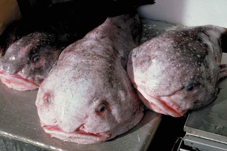 Blobfisch - Dieser schuppenlose Fisch ist nicht nur hässlich, sondern schaut auch noch ganz traurig! Unter Meeresbiologen wurde er schon zum "traurigsten Lebewesen der Meere" gekürt.