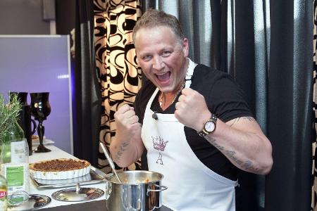 Beim perfekten Promi-Dinner gegeneinander angetreten waren Mario-Max Prinz zu Schaumburg-Lippe (vorne, rechts), Prinz Alexander von Anhalt (hinten, links), Prinz Ferdinand von Anhalt (hinten, rechts) und Gina-Lisa Lohfink.