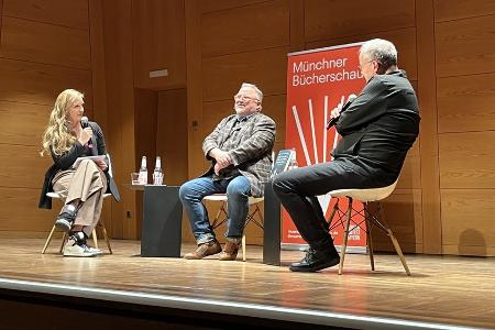 Münchner Bücherschau: Axel Prahl und Knut Elstermann (r.) beim Gespräch mit Caro Matzko.