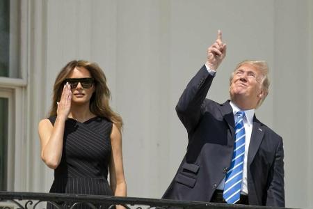 "Denkt daran, eure Brillen aufzusetzen", tweetete Trumps Tochter Ivanka noch kurz vor der Sonnenfinsternis 2019. Doch einer hielt sich nicht daran: ihr Vater. Mit zusammengekniffenen Augen und ohne Brille schaute der Präsident in die pralle Sonne.