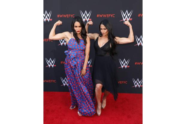 "Zieht uns für die Emmys in Betracht" - lautete das Motto des WWE-Events am vergangenen Mittwoch in Los Angeles. Dafür ließen die größten Stars der Branche auf dem Red Carpet ihre Muskeln spielen. Hier kann man die Wrestler-Schwestern Brie und Nikki Bella bewundern und auch...