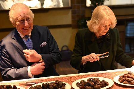 Denn Charles meisterte seine Aufgabe, bei dem er die Datteln mit einer Zange in Tütchen packte, bestens und bewies Schnelligkeit. "Ich hätte nicht gedacht, dass der König so schnell ist", staunte die Köchin, wie auch im Video in dem Instagram-Beitrag zu hören ist. "Sie verpacken die Datteln schneller, als ich sie versiegeln kann. Sie sind ein flottes Paar." Charles und Camilla erfreuten sich sichtlich an dem Kompliment, das auch bei allen Anwesenden für Erheiterung sorgte.