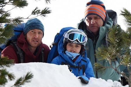 "Der Bergdoktor: Kalte Stille": Flora (Yuna Bennett) bringt Dr. Martin Gruber (Hans Sigl, r.) und seinen Bruder Hans (Heiko Ruprecht, l.) zu der Stelle, an der ihre Skilehrerin abgestürzt ist.