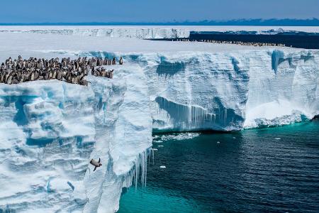 Ein weiterer Ausschnitt aus "Die geheimnisvolle Welt der Pinguine", der am Ekström-Schelfeis in der Antarktis spielt, ist bereits im vergangenen Jahr viral gegangen. In dem Vorab-Clip zur Doku springen Hunderte Baby-Kaiserpinguine von einer über 15 Meter hohen Eisklippe und tauchen im eiskalten Meereswasser wieder unversehrt auf. Auch dieser Moment wurde erstmals mit einer Kamera eingefangen. In den sozialen Medien sahen sich User das Video bereits millionenfach an. Die Serie liefert nun neue Aufnahmen, die ursprünglich nicht in dem viralen Ausschnitt enthalten waren und beleuchtet die Hintergründe des Pinguin-Klippensprungs.