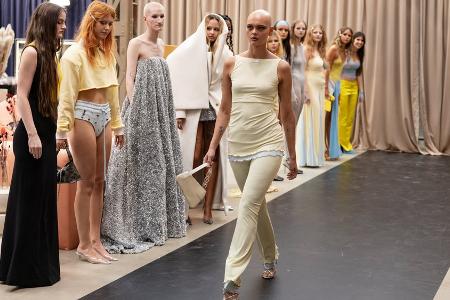 Viele Outfits sind gewagt und sexy. Was der 20-jährigen Merret aus Berlin Sorgen bereitet - sie möchte sich nicht zu offenherzig zeigen. Doch prompt steckt der Designer sie in einen winzigen Glitzer-BH kombiniert mit durchsichtiger, eng anliegender Hose und lässt sie die Show auch noch eröffnen. Auch die Münchnerin Alisa (26) trägt eine Kreation, die viel Haut und Kurven zeigt - jedoch ganz zu ihrer Freude. "Ich bin nicht die klassische Schönheit. Ich bin 'curvy'. Aber echte Schönheit kommt von innen."