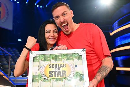 Bei "Schlag den Star" sind am Samstagabend der Fußballstar Max Kruse (36) und seine Ehefrau Dilara (33) als Sieger aus der Show gegangen. Die beiden gewannen in einer Pärchen-Ausgabe der ProSieben-Sendung knapp mit 63:57 Punkten gegen Entertainer Jens "Knossi" Knossalla (38) und seine Verlobte Lia Mitrou (28).