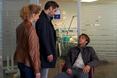 "Der Bozen-Krimi: Blutrache": Matteo Zanchetti (Tobias Oertel) und "Frau Commissario" Sonja (Chiara Schoras) sprechen mit ihrem Kollegen Jonas Kerschbaumer (Gabriel Raab, r.)