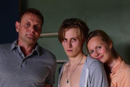 "Für immer Eltern": Niklas Wagner (Max Schimmelpfennig, M.) sucht bei seinen Eltern Michael (Devid Striesow) und Anja (Anja Schneider) Unterschlupf.