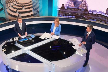 "Die Wahlsendung im Ersten" mit Tina Hassel (Mitte), Ingo Zamperoni (r) und Jörg Schönenborn (l.).